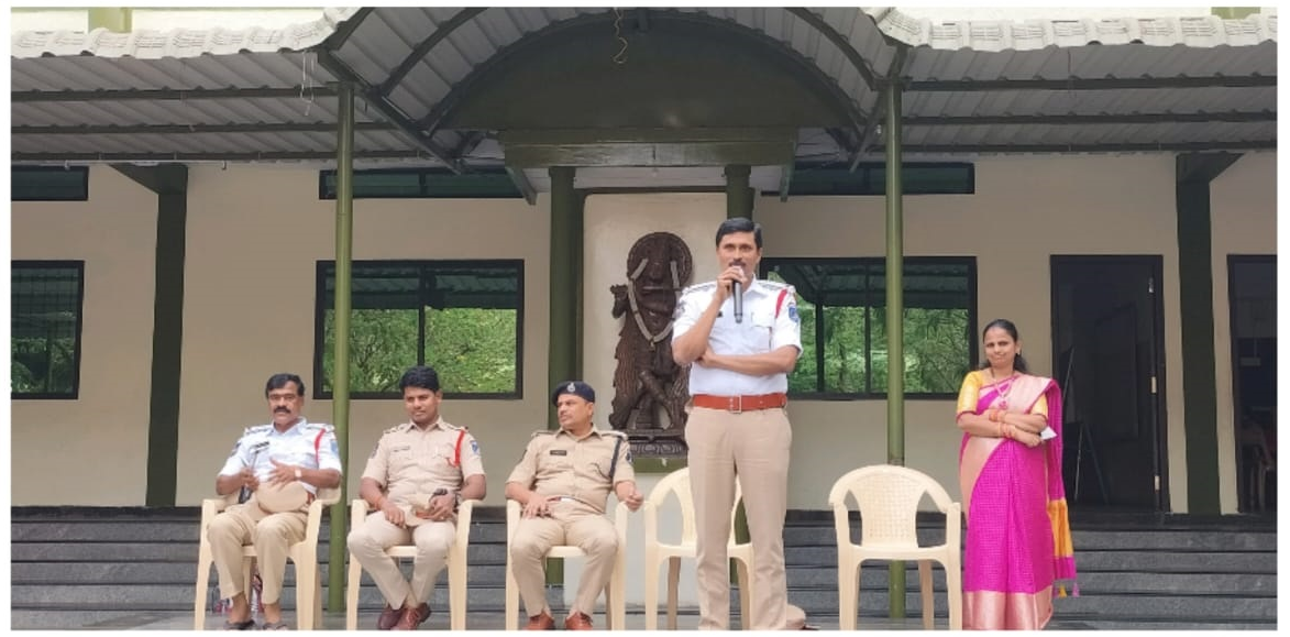 The necessity of knowing and managing one’s own road safety for a child is increasing. KPHB traffic police ACP Venkataiah, and CI Venkat counseled students about Road safety rules.